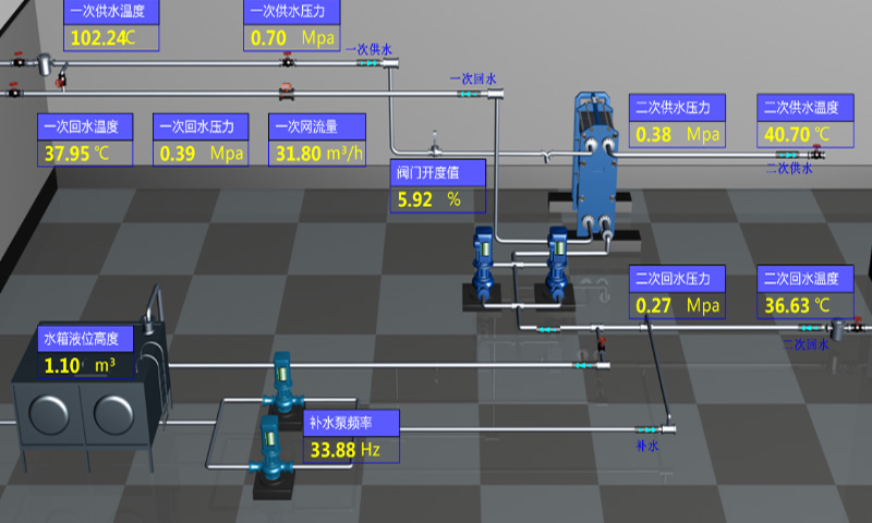 換熱站的原理是把一次網得到熱量,自動連續轉換為用戶需要的生活用水及采暖用水。即熱水(或蒸氣)從機組的一次側入口進入板式換熱器進行熱交換后,從機口一次側出口流出,二次側回水經過過濾器除去污垢后
